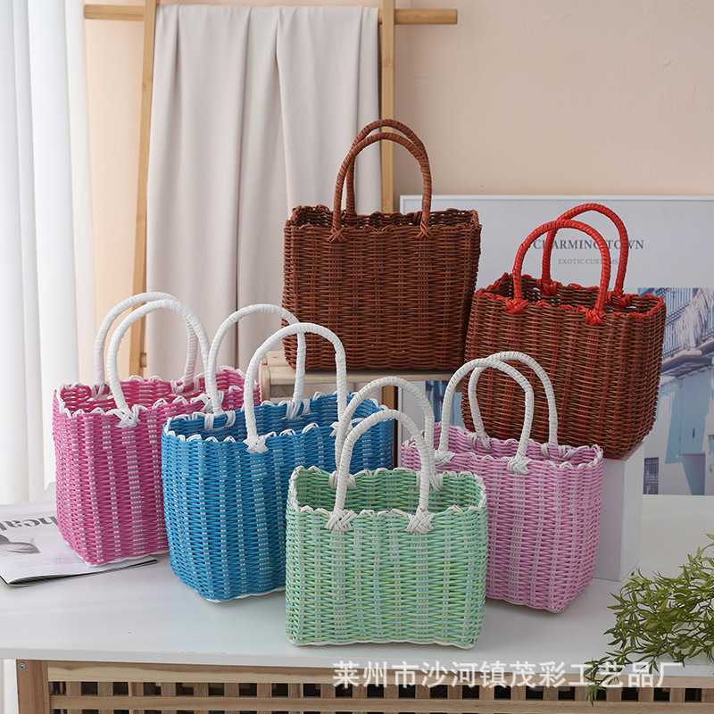 レトロ編み女子ハンドバッグ大容量野菜バスケット