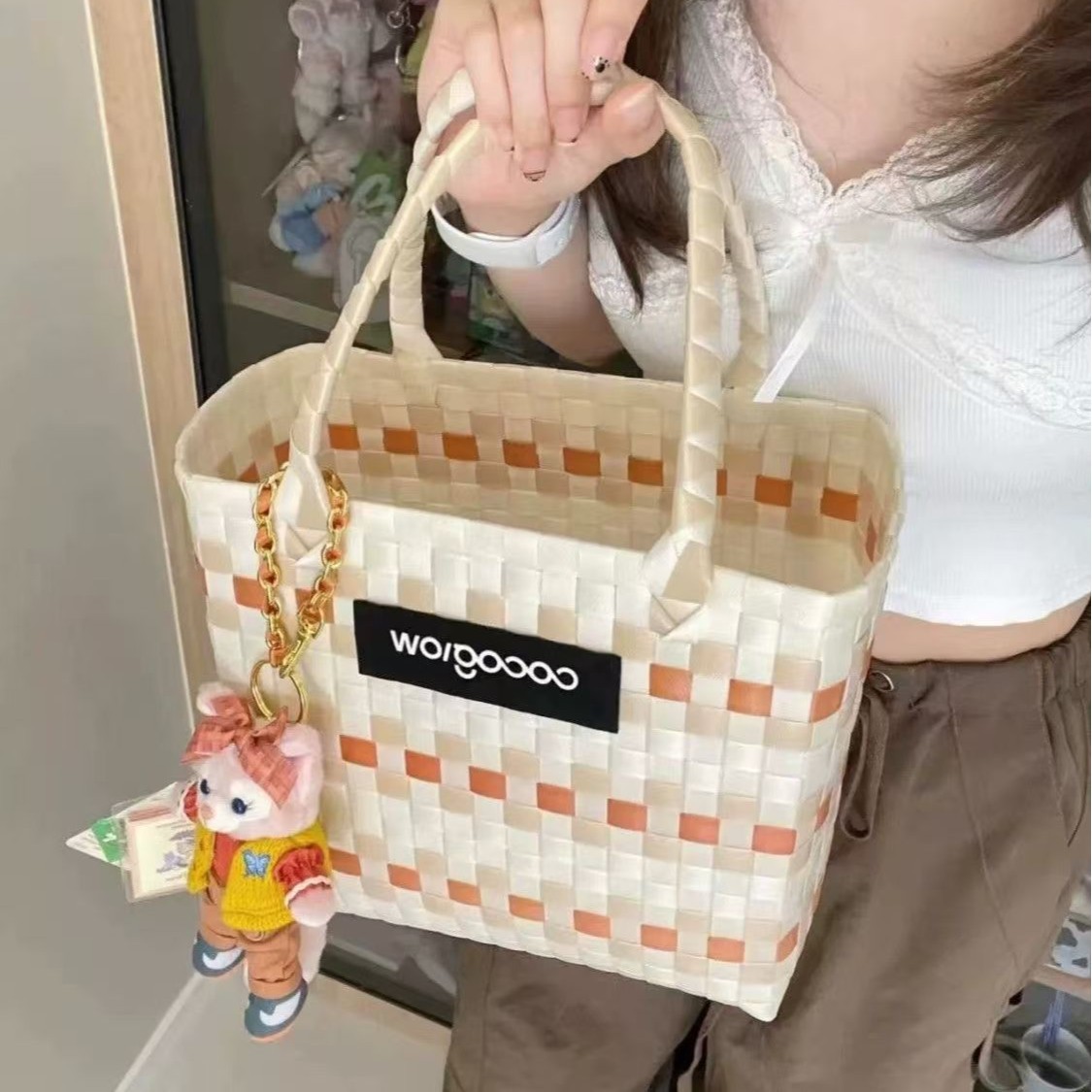 ベストバッグ馬甲バッグカジュアルニットハンドバッグバッグ棋盤格衝突色韓国軽贅沢風ハンドバッグ