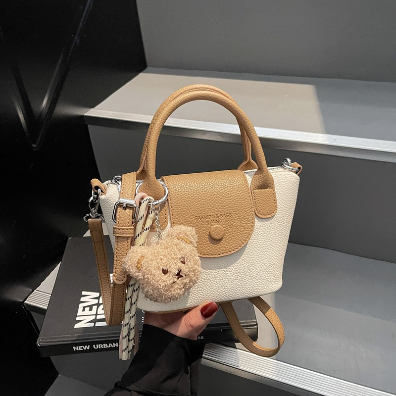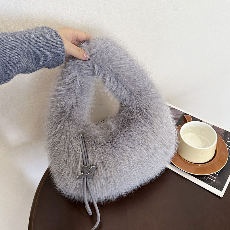 クロスフラワーファーハンドバッグぬいぐるみかわいい脇の下バッグ2025秋冬新作ショルダーバッグトレンディなレディースバッグ