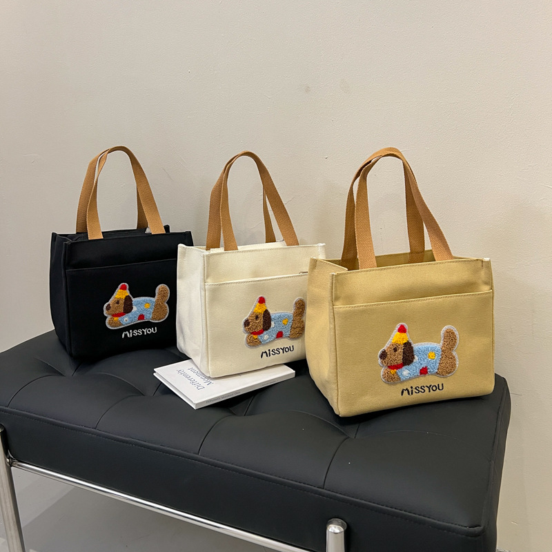 ズックバッグ女子大容量学生かわいい百合子犬レジ袋弁当箱袋手提げランチバッグ