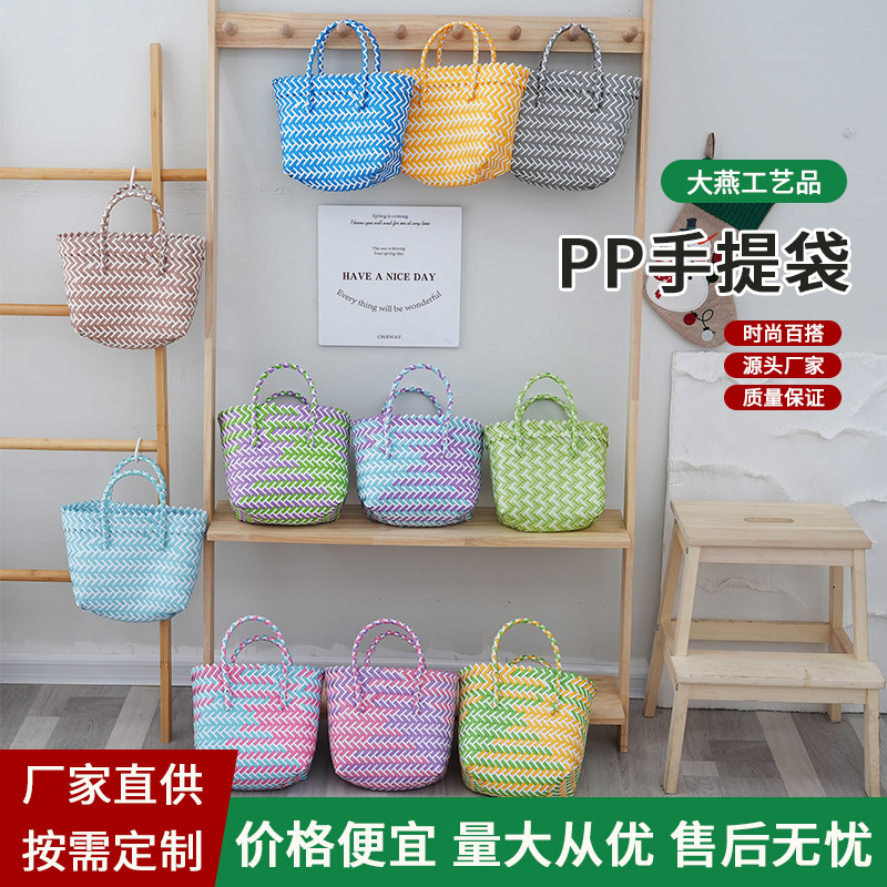 PP手編み野菜かごバッグお土産大容量百合レジャー編みバッグハンドバッグ現物卸売り