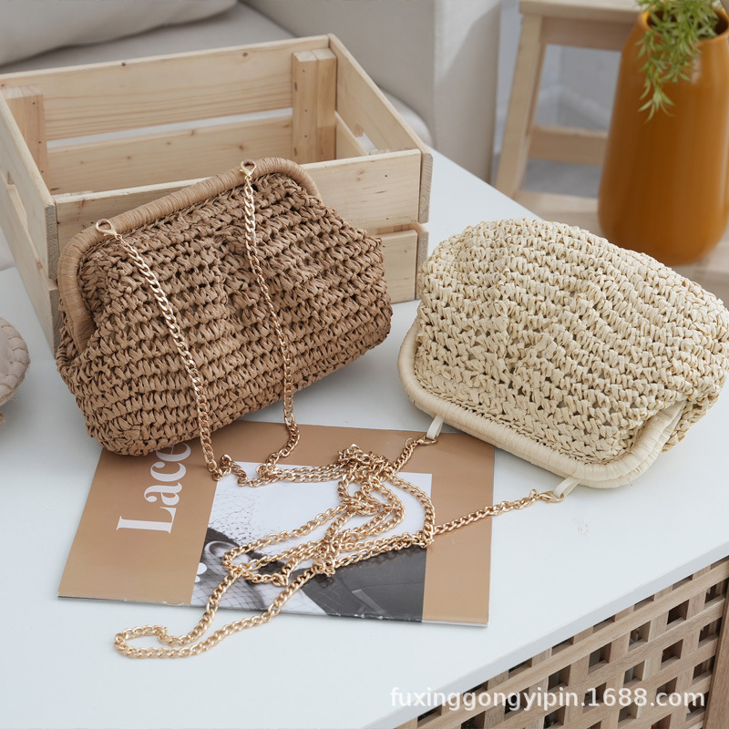 草編みのファッションチェーン編みの透かし彫りのショルダーバッグ2025春夏の新型の小さい大衆の女性のカバンのカジュアルなバックルの斜め掛けのショルダーバッグ