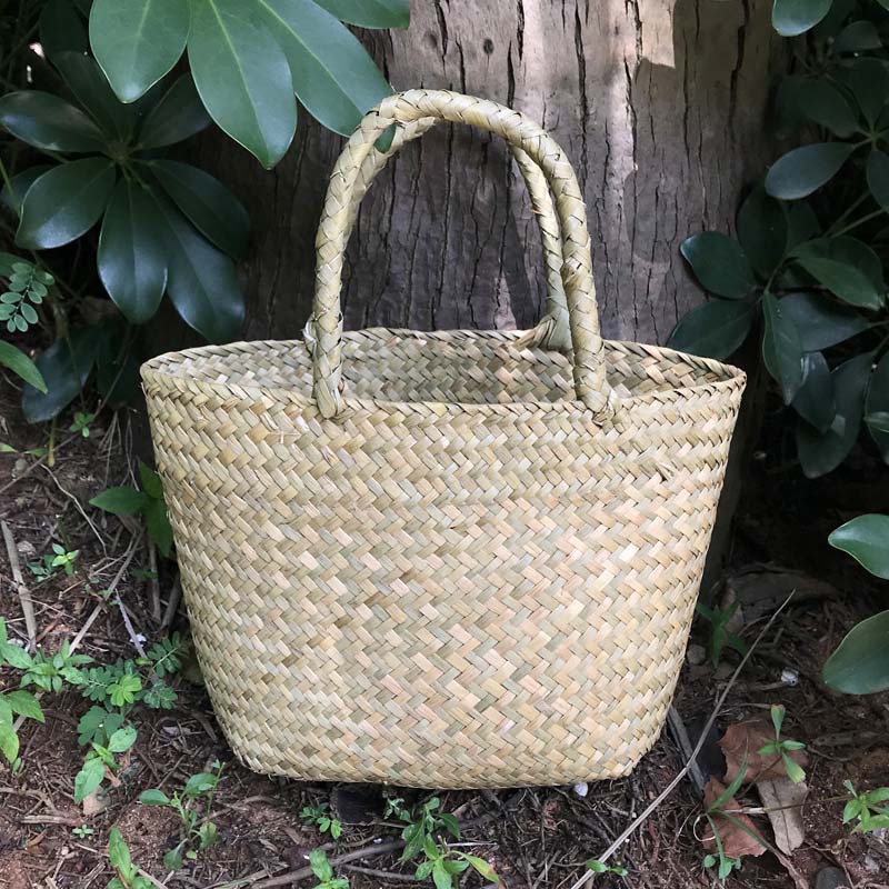 純手作り天然素材海草手編み草バッグ 旅行休暇用草編みバッグ 小清新ビーチ編みバッグ