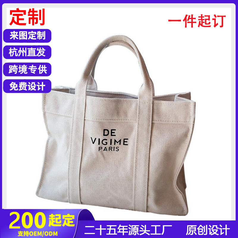 女性の新しいクロスボーダーオリジナルキャンバスバッグ大容量ブランクデザインニッチジッパー開閉ハンドバッグ