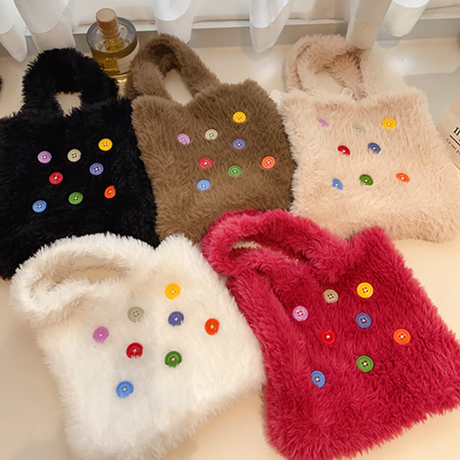 カラフルなボタンのぬいぐるみのハンドバッグ秋冬の新しい女性のカラーボタンは韓国版の大衆のデザインの磁気ボタンの手を締めます。