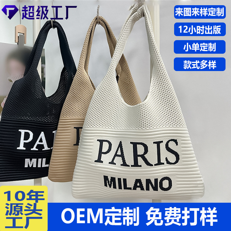 2024年流行のおしゃれな斜め掛け手作りバッグ、通勤にも使える万能な綿糸編みハンドバッグ、メーカー卸売