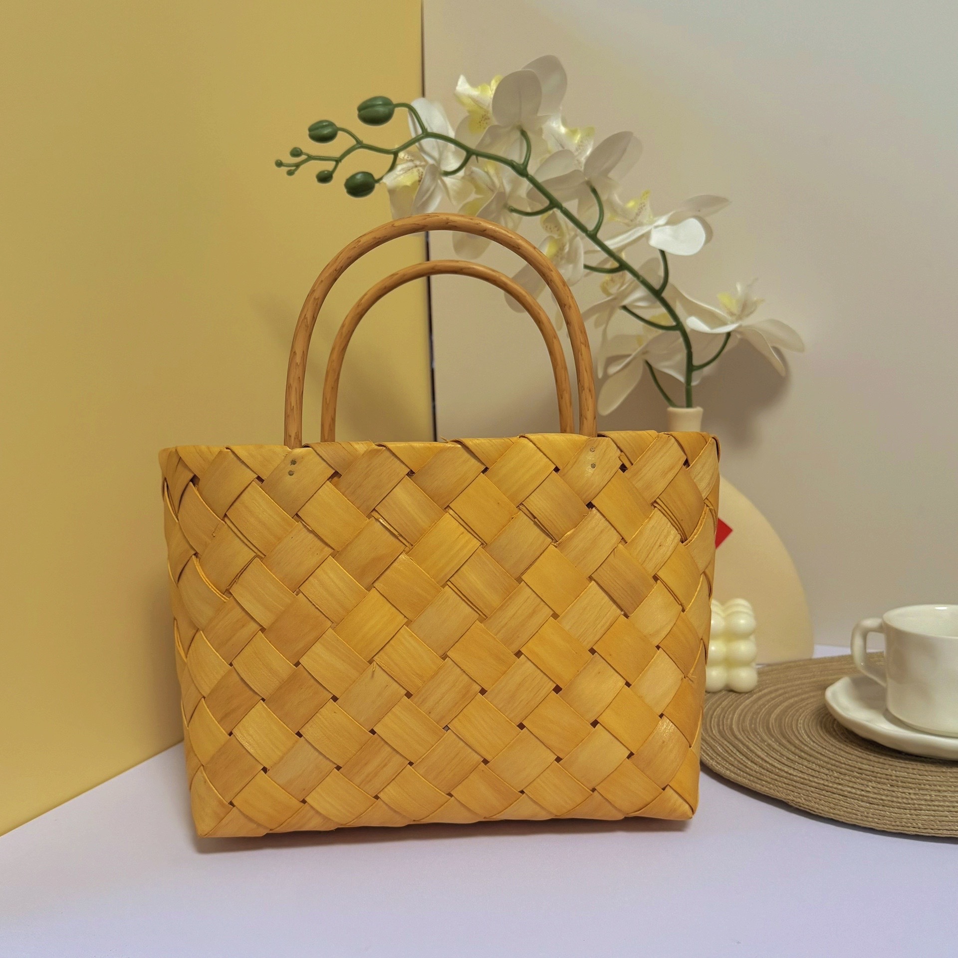 新しい籐織ハンドバッグ竹バッグレトロシンプルな竹織トートバッグ大容量ショッピングバッグ多用途織バッグ