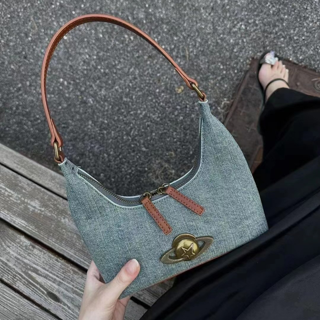 デニムの小衆の脇の下のカバンは高級感の星のショルダーバッグの女性のギャルの復古のカバンのシングルショルダーバッグに似合います。