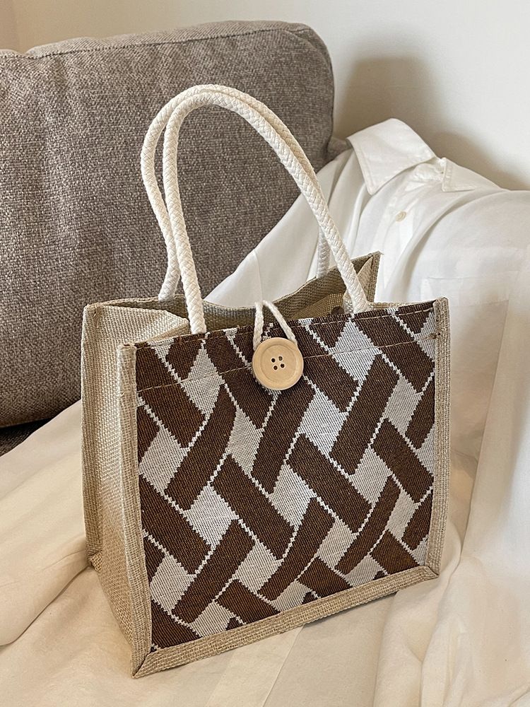 リネン小さなバッグ女性のための 2024 新しいレトロファッションコットンとリネンキャンバスハンドバッグ学生外出ハンドヘルドランチボックスバッグ