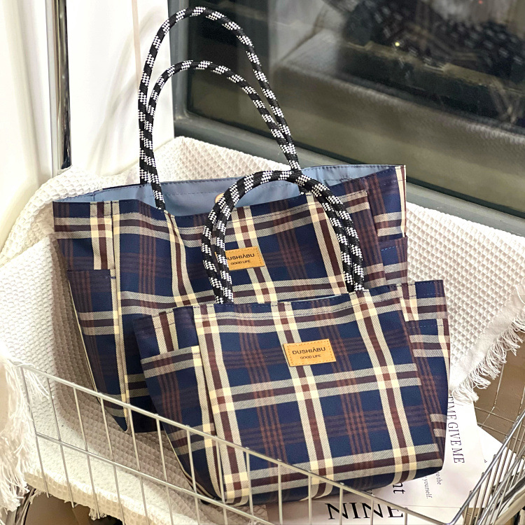 新型韓国版小衆格子手提げ多層大容量特包マミーバッグ通勤バッグ