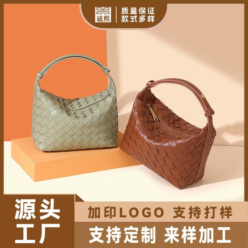 工場カスタマイズされたロゴ入りハンドキャリーランチボックスバッグ、ファッショナブルな手織りレディースバッグ、フレッシュでカジュアルなシングルショルダー脇の下バッグ