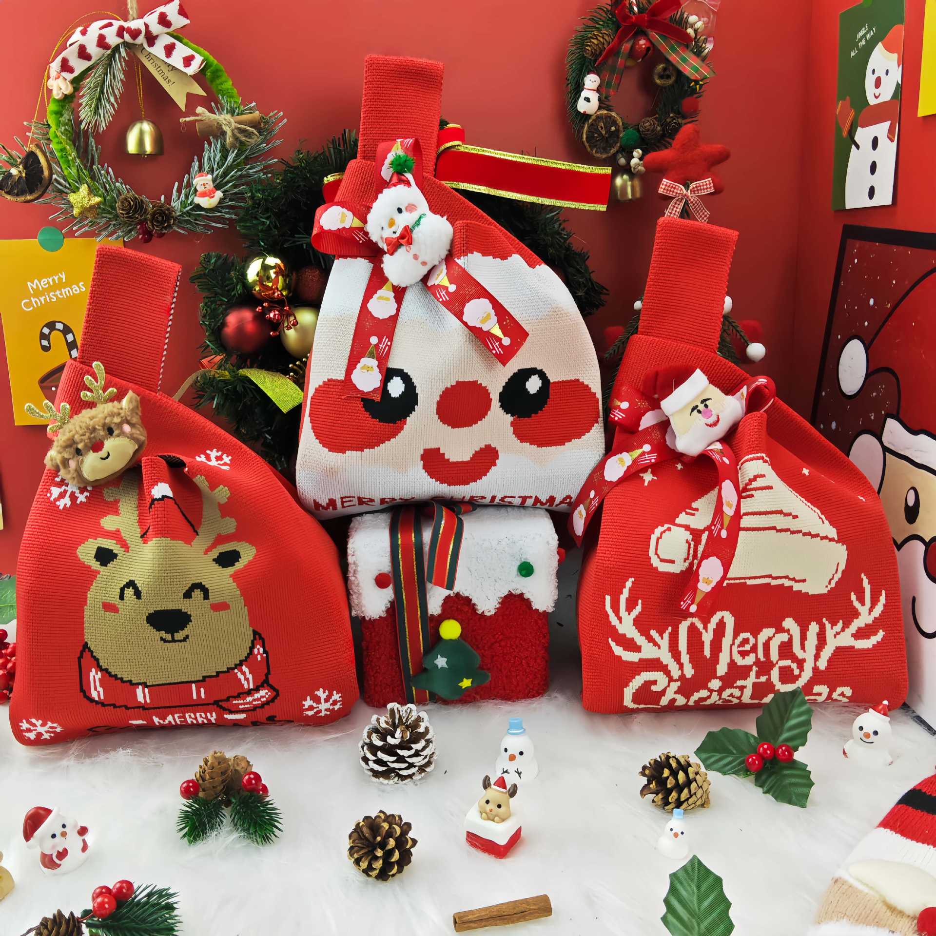 2024クリスマスシリーズかわいい漫画ギフトバッグクリスマスプレゼントキャンディーバッグ大容量ニットバッグ卸売り