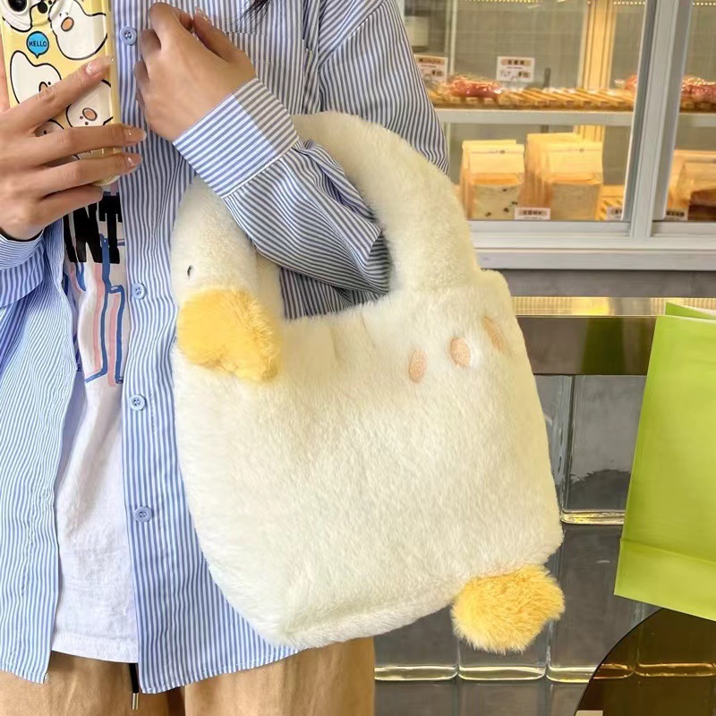かわいい大きな白いガチョウのバッグ、クロスボーダー新作ショルダーバッグ、女性用ぬいぐるみトートバッグ、日本のロリータ無地ハンドバッグ