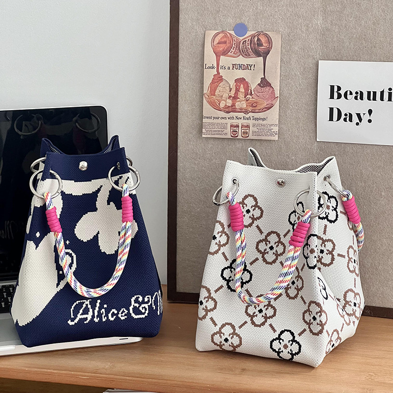 シングルショルダーバッグ女子高級感小衆大容量ファッション百合小衆ニットハンドバッグバケツバッグ