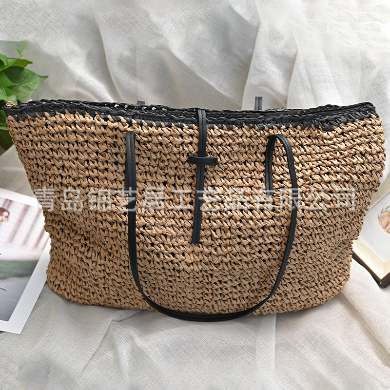 純色のシンプルな森系の紙の紐はハンドバッグを編みます。