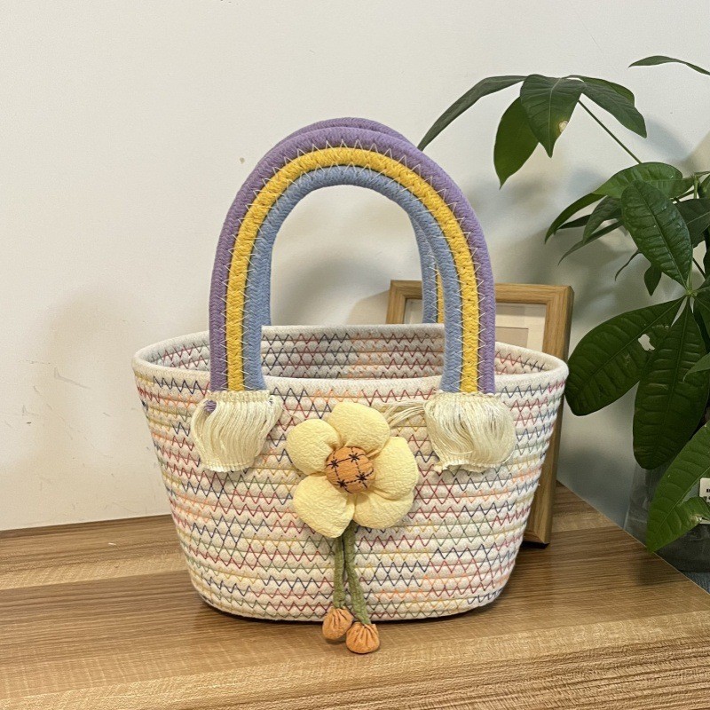 綿の縄のハンドバッグの虹の包みのファッションは簡単で清新で甘い休暇の旅行のハンドバッグは手土産の贈り物を編みます。