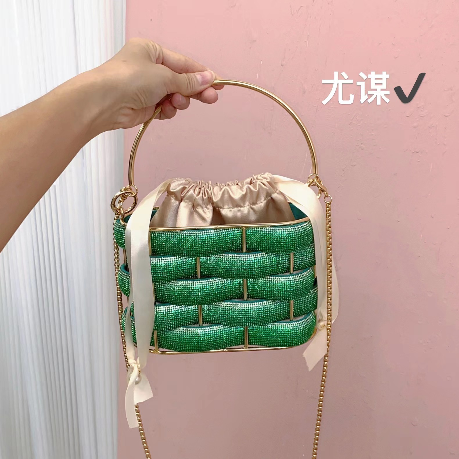 メーカー直販銀珠ハンドバッグ満ドリル女性バッグ2025夏の新型ファッションチェーンには、シングル肩斜めバッグが入っています