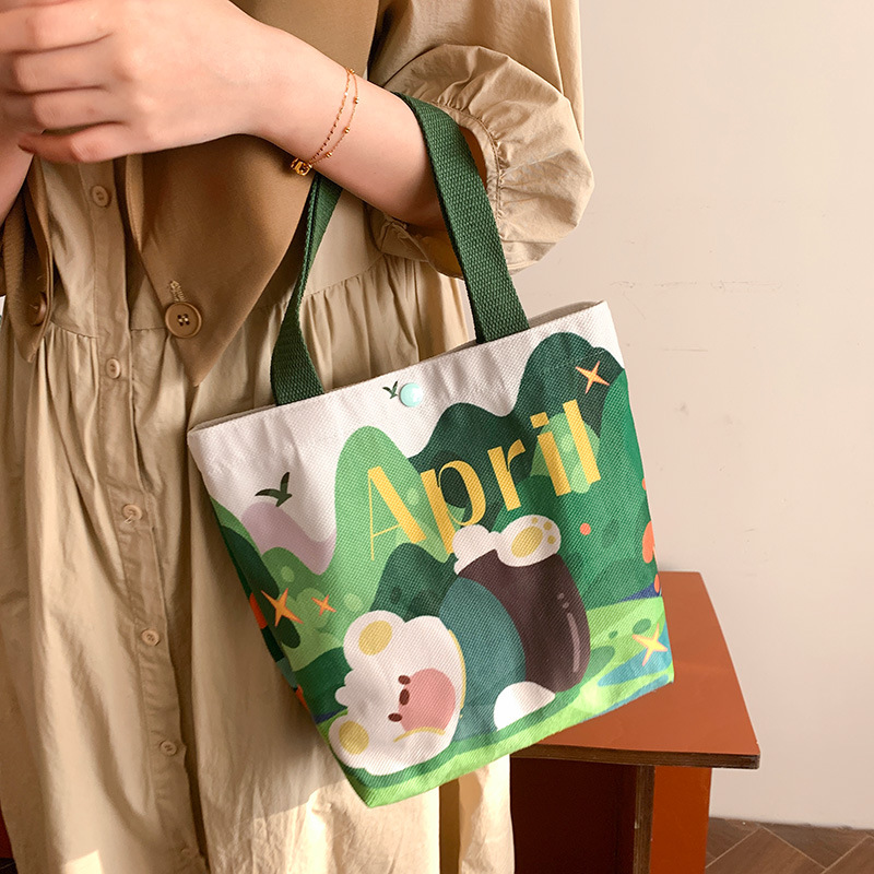 韓国の手持ちアニメのかわいいキャンバスバッグの女性2024新型大容量の学生が出勤して弁当箱を包んで代行します。