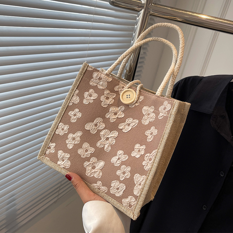 亜麻手提げ袋女子外出バッグ2022ネットレッドins日系ショルダーバッグ学生弁当箱弁当包女子