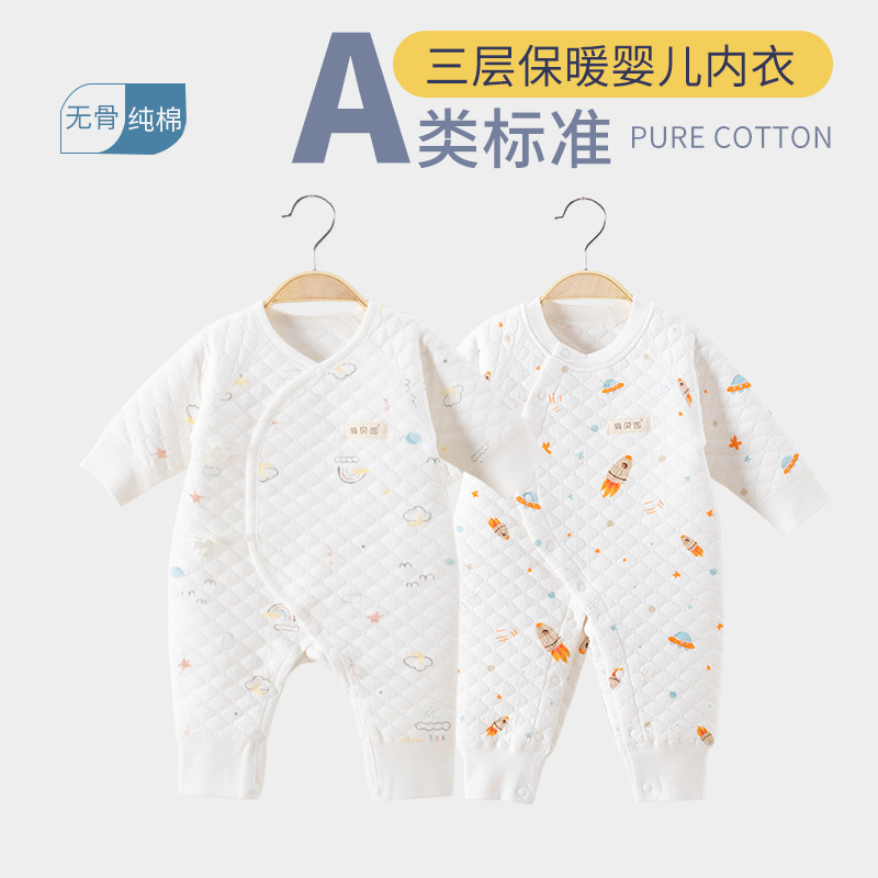 新生児のストラップの連体服0-6ヶ月秋冬の赤ちゃんの三層は綿を挟んで保温します。
