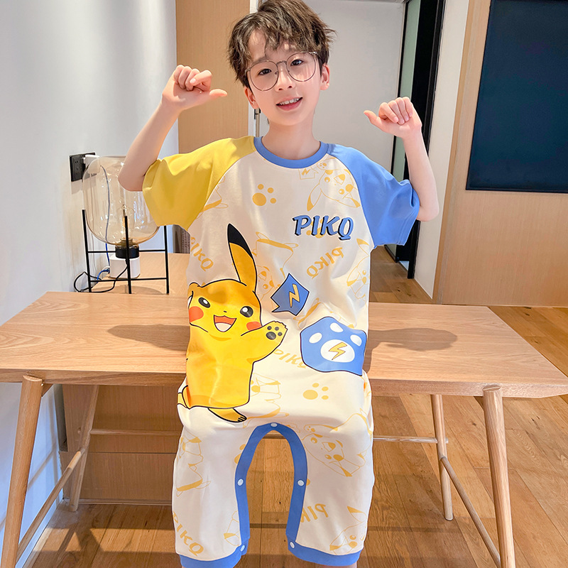 子供用ワンピースパジャマ、男の子夏用半袖薄手アンチキック寝袋、中型および大型子供用ワンピーススーツ、空調服