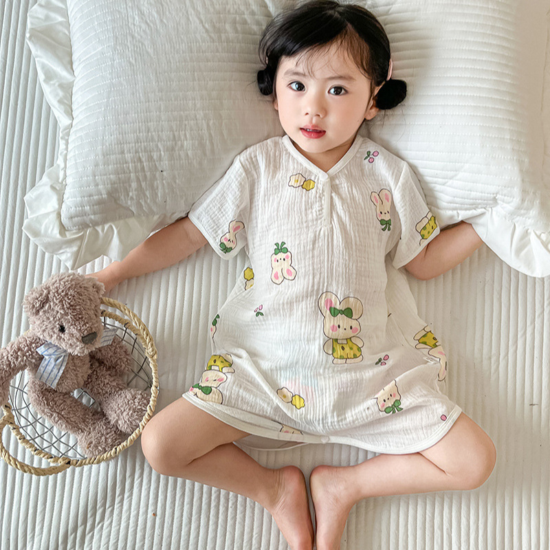 子供の半袖ガーゼの寝衣の女性の赤ちゃんの泡の糸の寝のスカートの代行