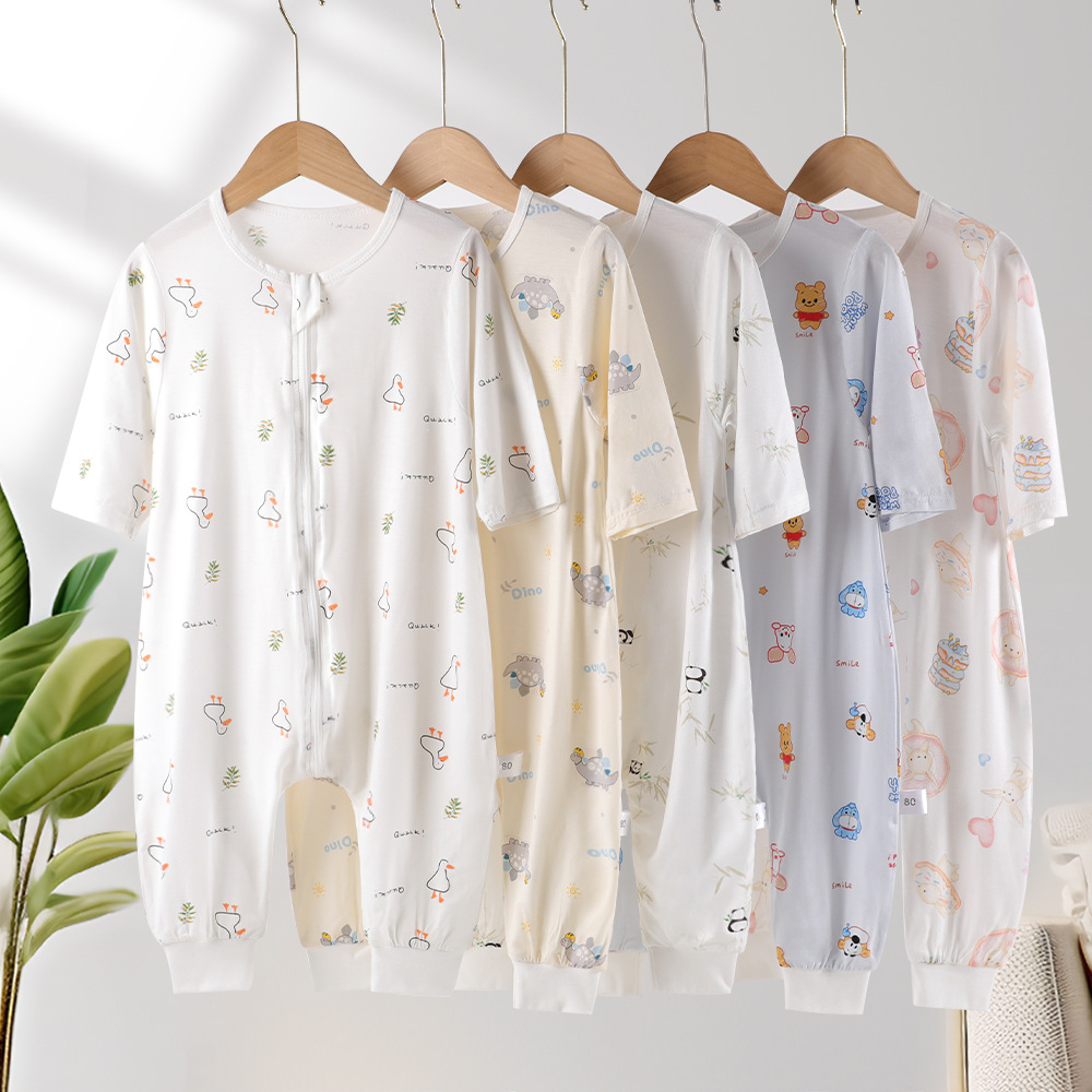 春夏新作ベビーミッドスリーブボーンレス寝袋子供薄型ライクラ綿シームレスホーム服ドロップシッピング