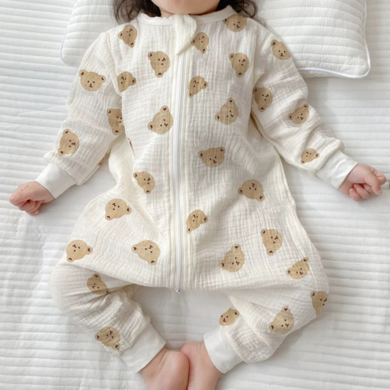 ベビー寝袋夏薄いガーゼ純綿春と秋の赤ちゃん開脚アンチキック男の子と女の子子供用ワンピースパジャマ