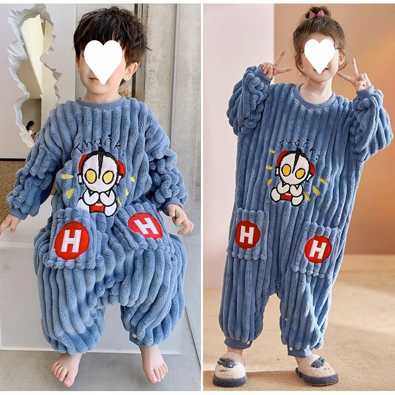 赤ちゃんの連体パジャマ秋冬の男女のフランネルとベルベットの厚いサンゴのぬいぐるみのウルトラマン寝袋