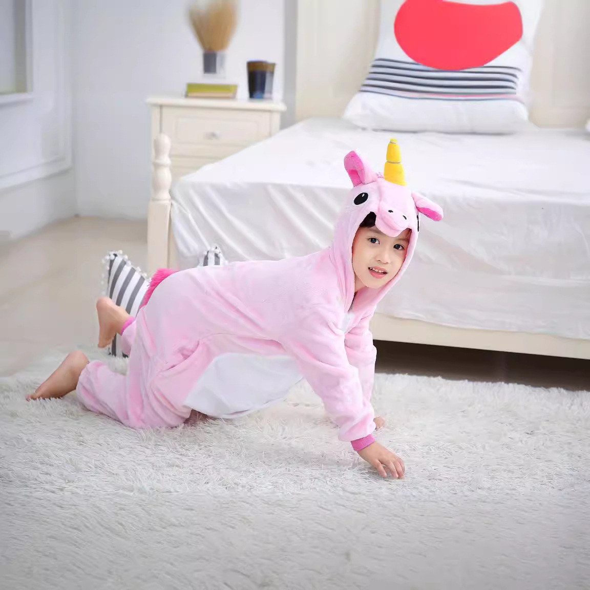 フランネル子供漫画ワンピースパジャマ動物ホームウェアパジャマ新しいコスチューム親子服