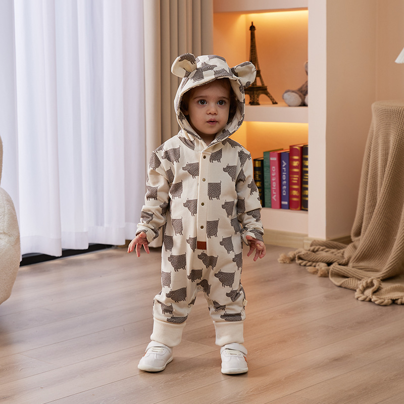 北欧風長袖外出連体服家庭服赤ちゃん秋冬哈衣帽子保温児童ネット赤卸売り