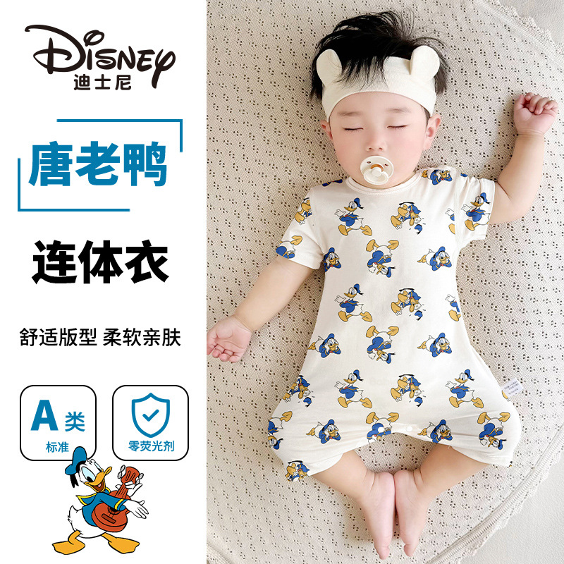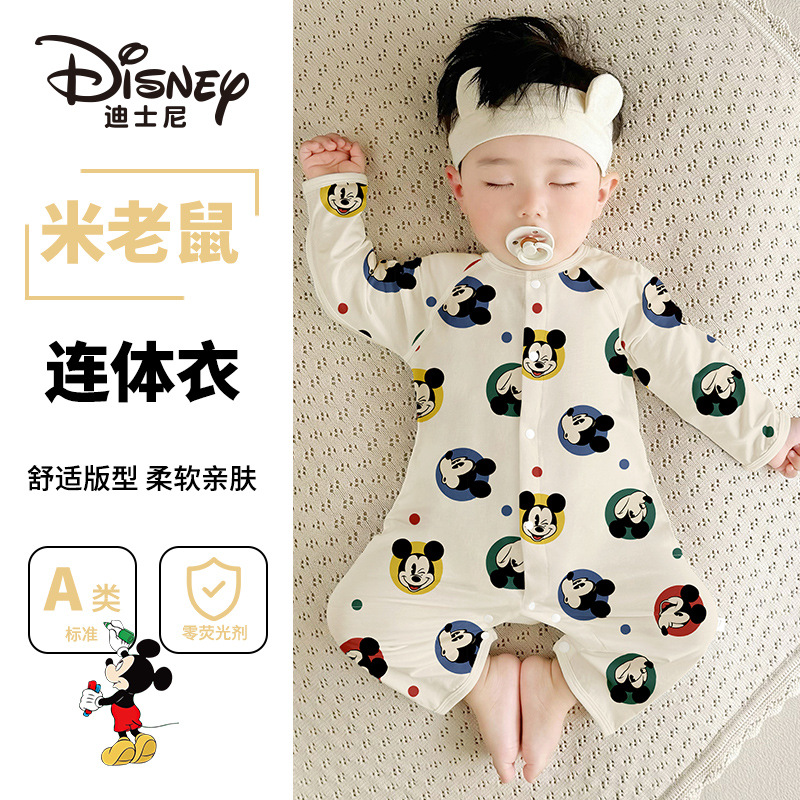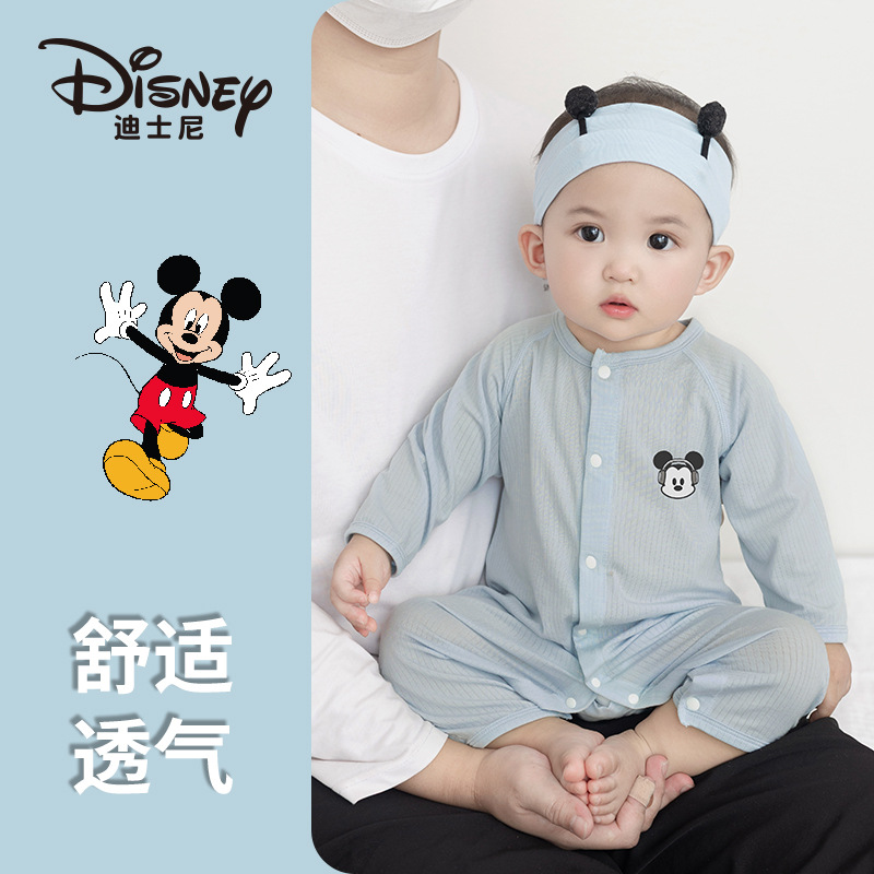 ディズニーベビージャンプスーツ夏薄手長袖ボンレスリヨセルベビー空調ロンパース新生児服