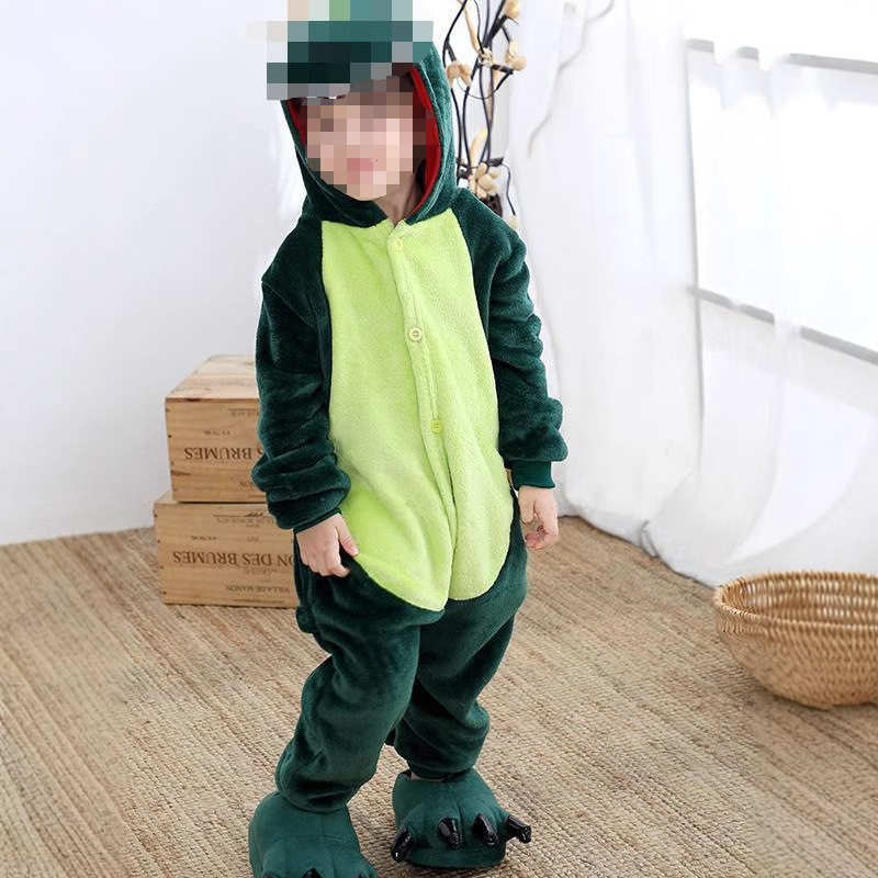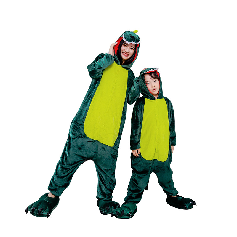 越境秋冬フランネル恐竜パジャマ動物かわいい連体服セット演出服メーカー卸売り緑恐竜