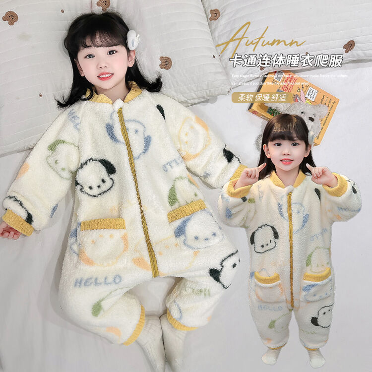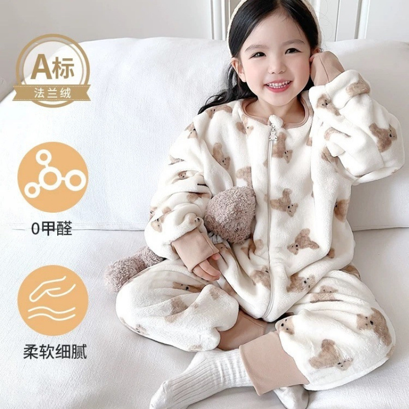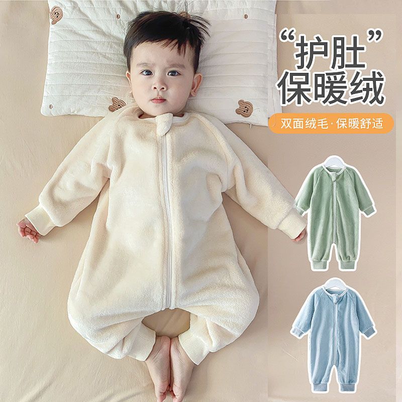 女の子パジャマ連体フランネル秋冬金2024赤ちゃんサンゴベルベット子供男の子赤ちゃん寝袋ホームウェア