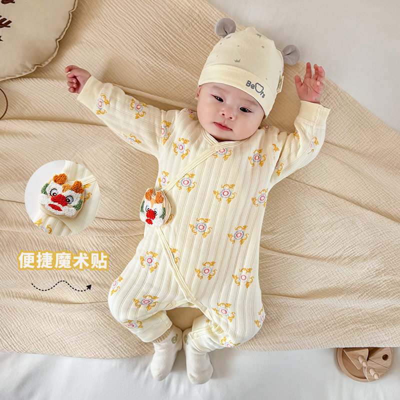 初生の赤ちゃんの連体服竜年国風の蝶の服の男女の赤ちゃんは保温して子供の純綿の外で服を着ます。