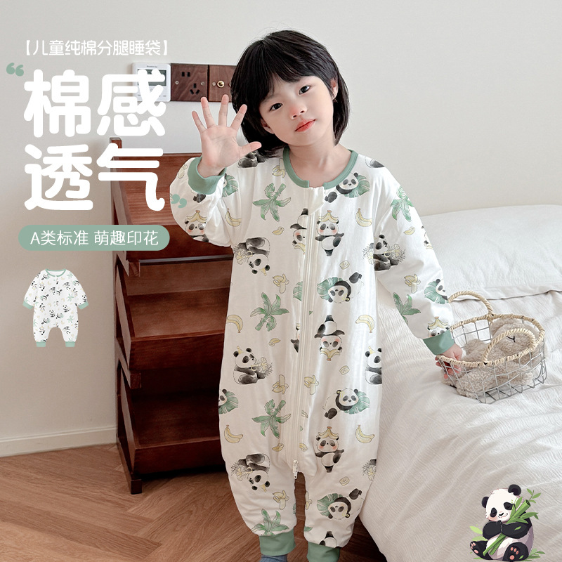 上宝麦春夏児童連体パジャマファスナー綿綿柔らかい男女赤ちゃん寝袋家庭服蹴り防止布団