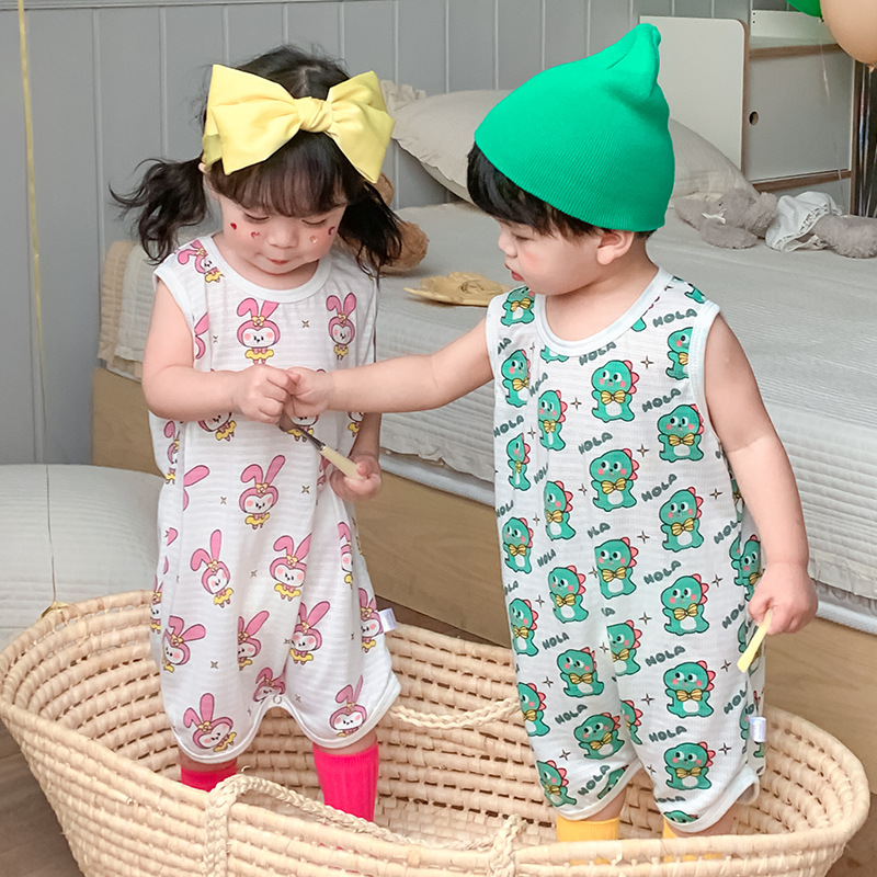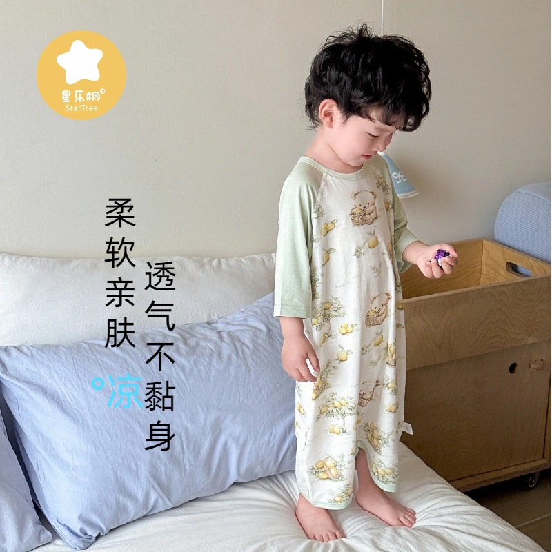 子供用パジャマ夏の薄い竹繊維袖なしのワンピースパジャマ