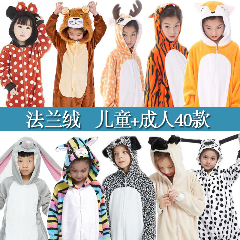 秋冬の漫画の連体の動物の家庭服の親子の動物のフランネルのショーのレジャーの家庭の代行の卸売り