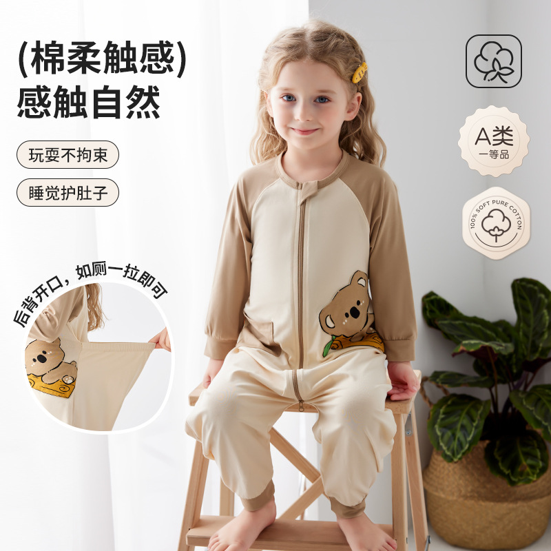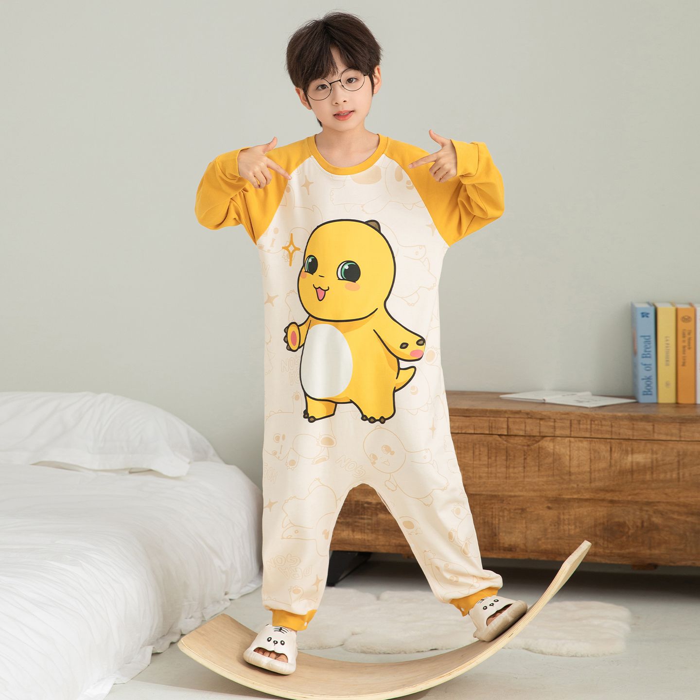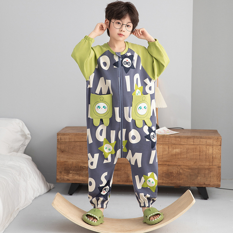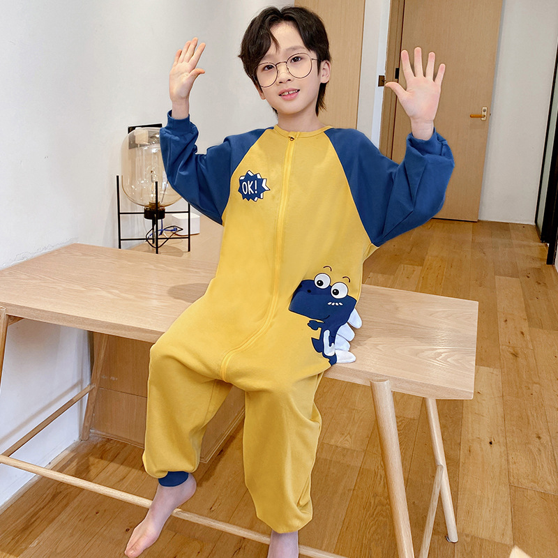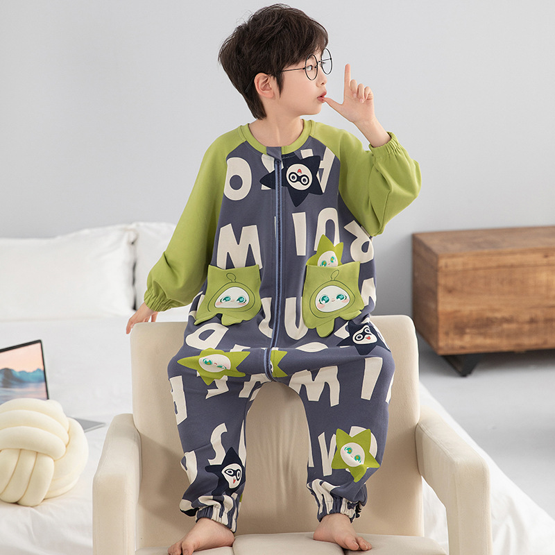 新款秋季男童连体睡衣睡袋纯棉长袖春秋大中小童可爱儿童家居服