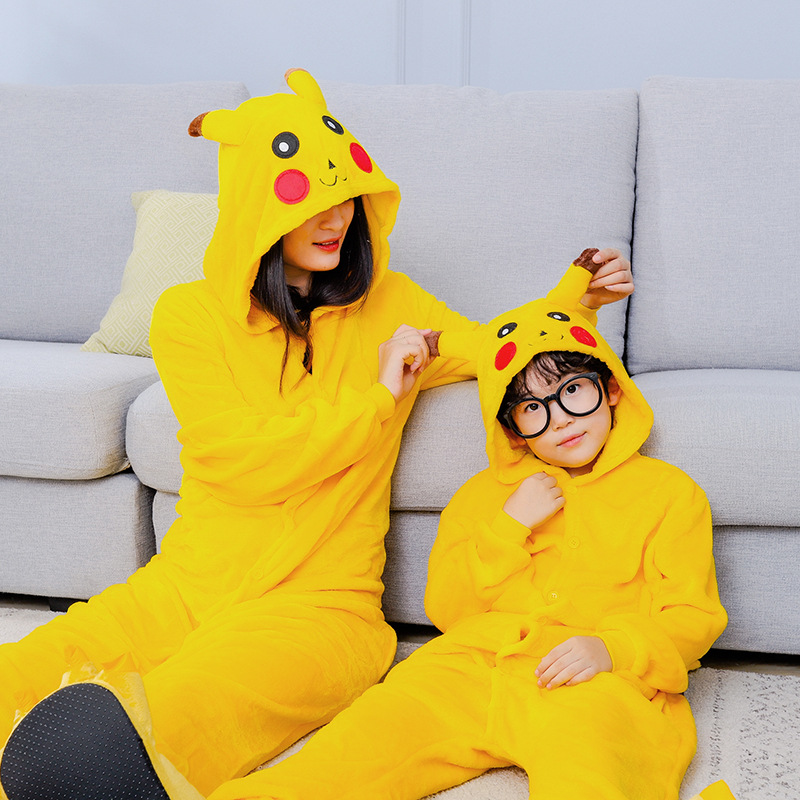 熊大熊二連体パジャマ秋冬親子服一家三口コーラルパイル厚手子供ホームウェア四口
