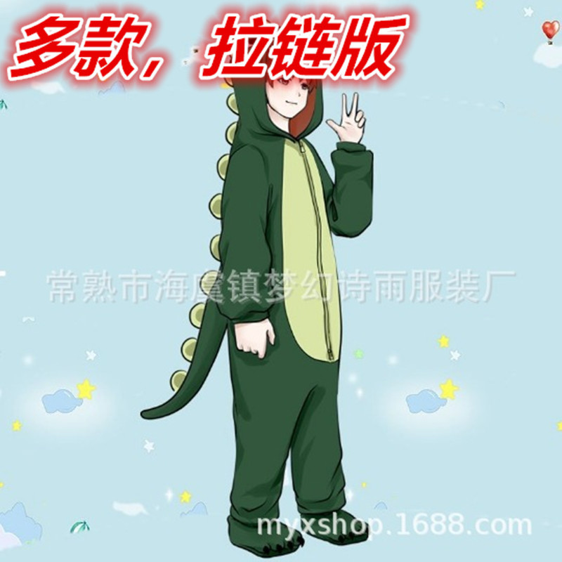 秋冬恐竜ジッパー版スティッチトトロ漫画動物フランネルワンピースパジャマ男女ホームウェア