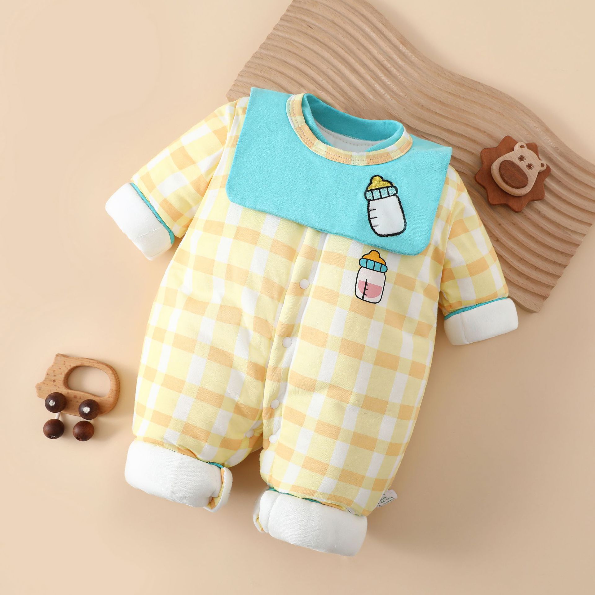 ネットで話題の男女兼用ベビーロンパース、綿入り厚手秋冬用純綿服、新生児用ハーレム服、220g綿、韓国風