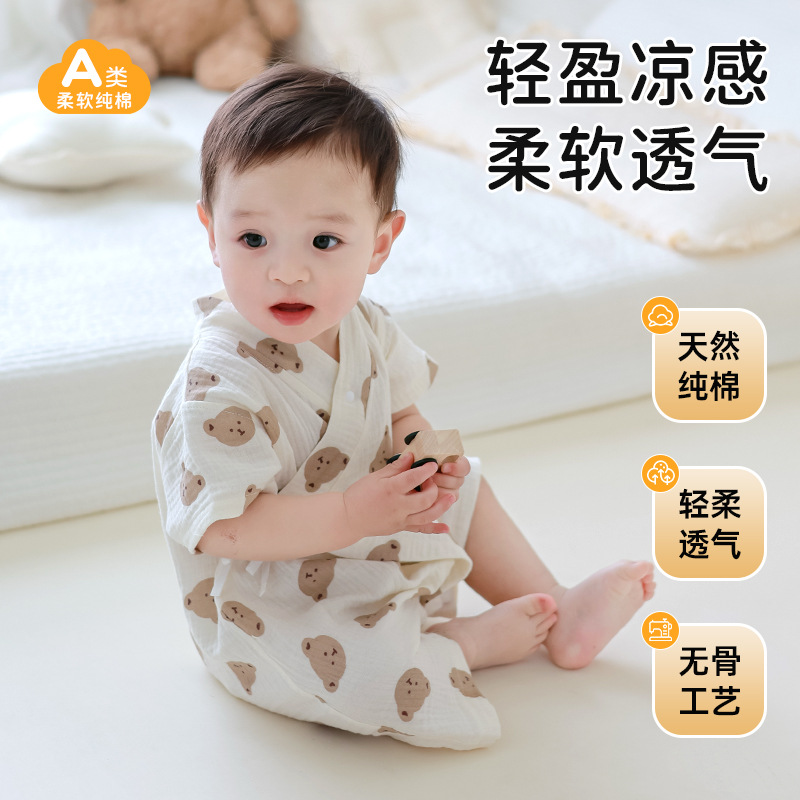 A類の夏の赤ちゃんの連体服の赤ちゃんの超萌は男の子の赤ちゃんの女の子の薄い金のゆったりしている通気性の版の哈衣の韓国版に登ります。