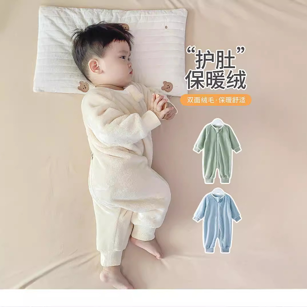 2024秋冬の新型子供フランネルパジャマ女性の赤ちゃんは二重に厚くなってサンゴのベルベットの家庭服の寝袋に登った