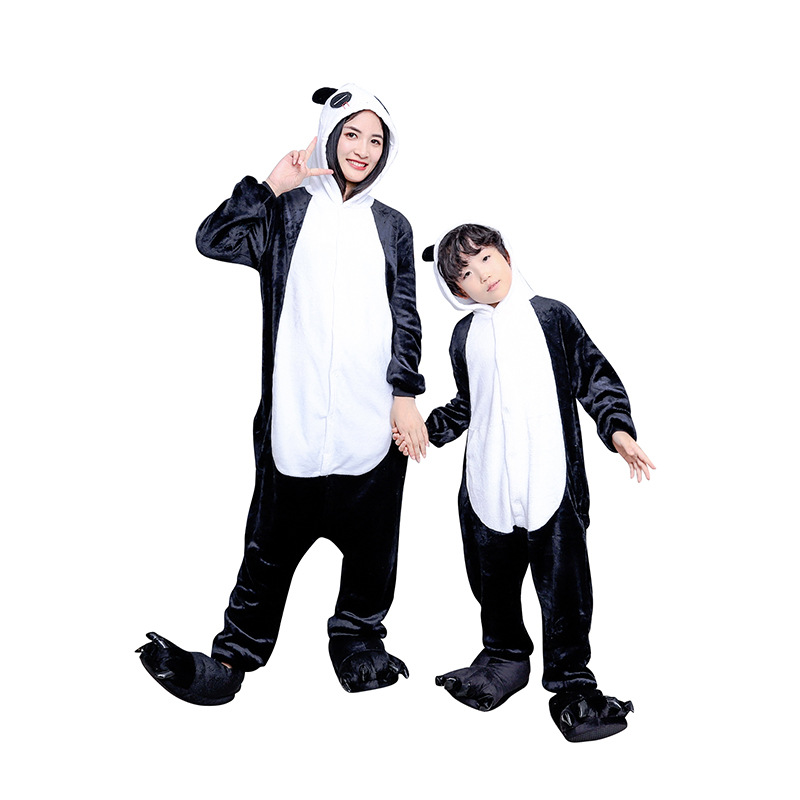 秋冬の漫画の連体のパンダの家庭服の親子の動物のフランネルのショーのレジャーの家庭の代行の卸売り