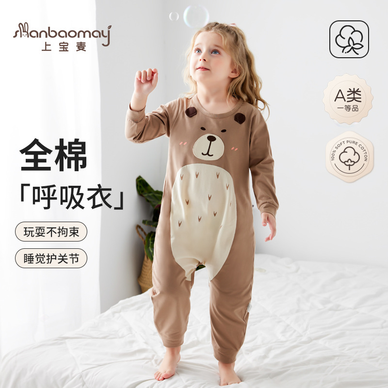Shangbaomai 春と夏の薄い子供用ワンピースパジャマ純綿ソフトベビーパジャマ男の子と女の子用ホーム服お腹保護とキック防止