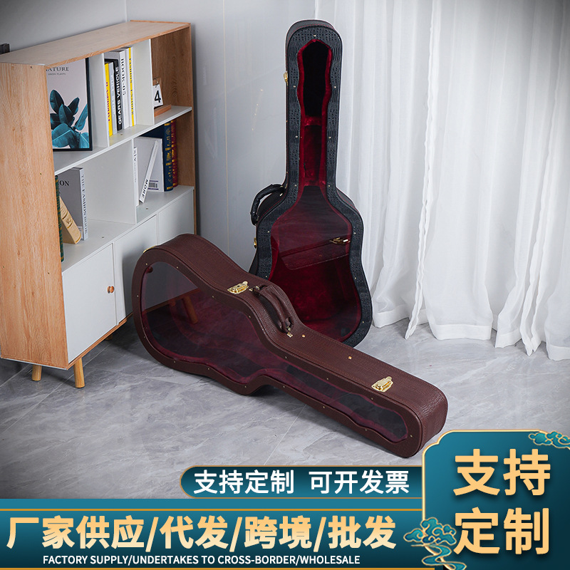 41インチの木のギターの琴の箱の透明なアクリルの民謡のギターの旅行の箱の手持ちの圧力の防水の盗難防止の皮革の箱