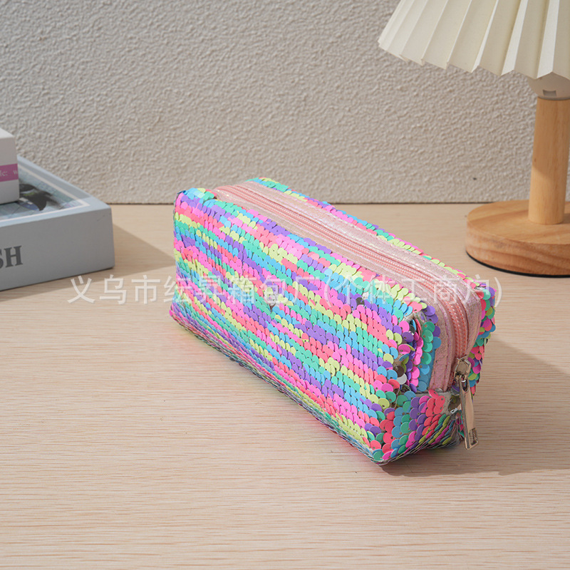 新しい虹のうろこのスパンコール化粧バッグins高颜値シンプル収納バッグ携帯型学生クリエイティブ筆袋