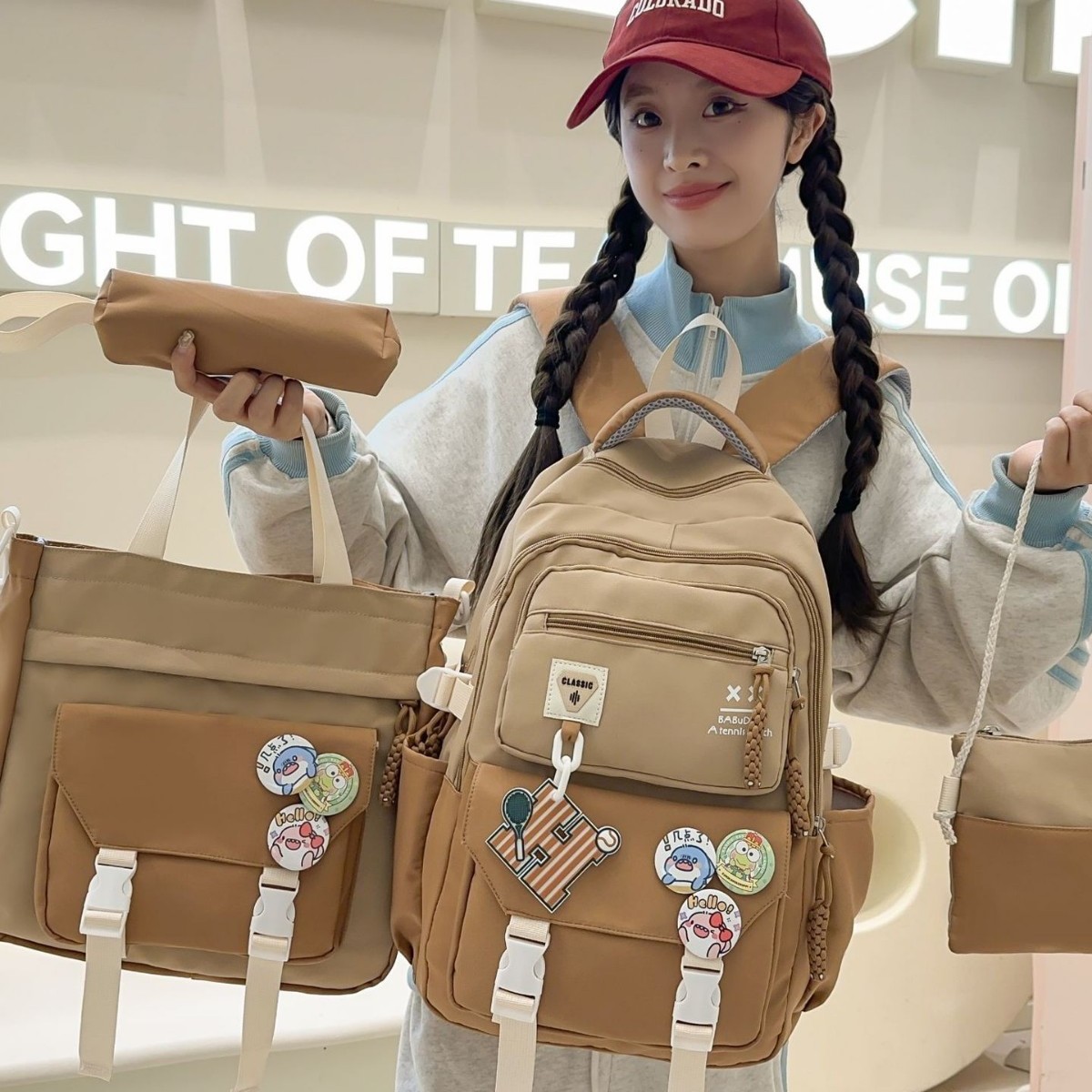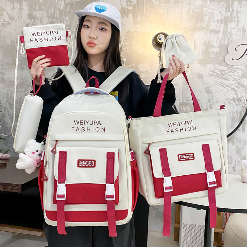 2025新型5点セット学生カバン日系ins衝突色ランドセル大容量中高生リュックサック