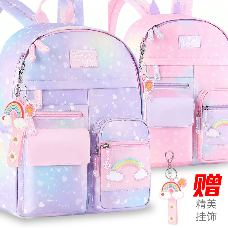 現物の女の子のグラデーション色の小学生のカバンはとても軽くて可愛いです。